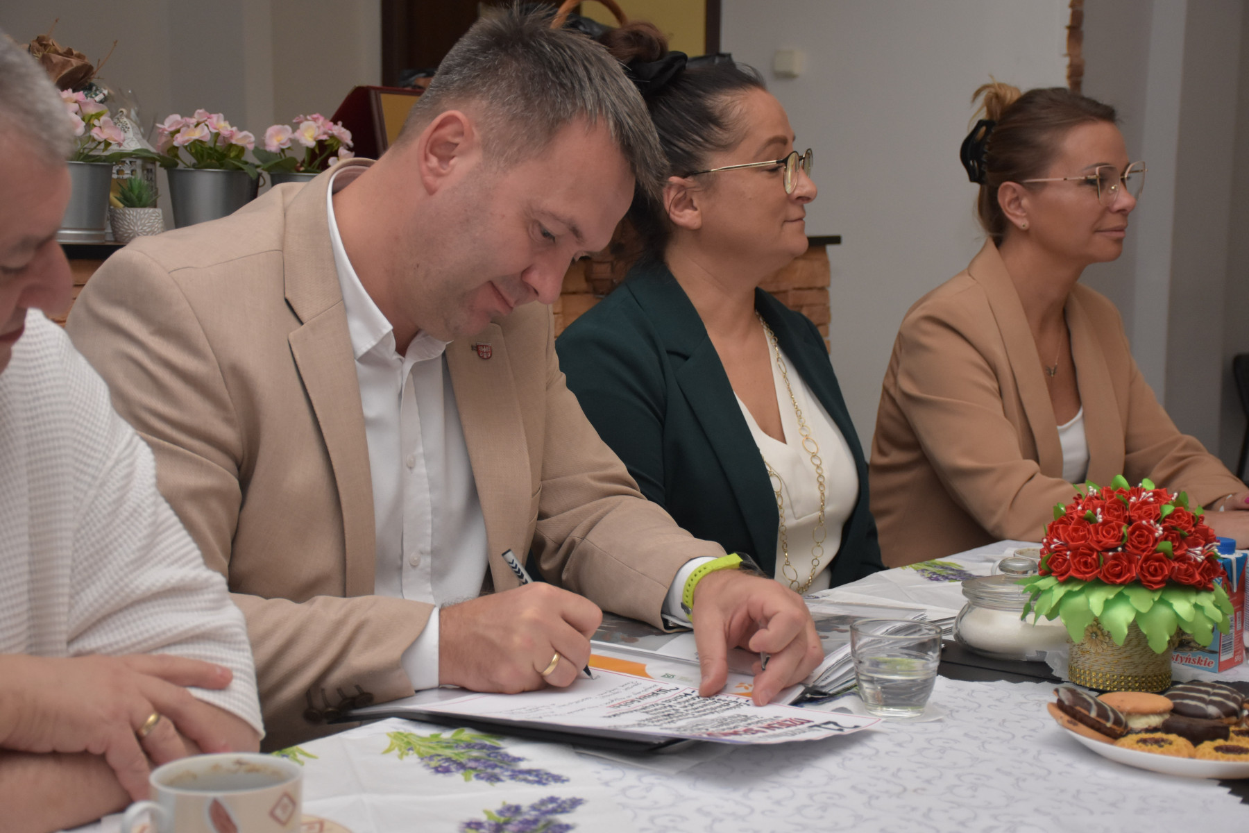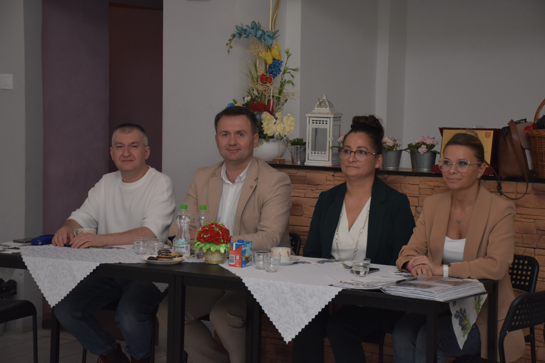 Starosta Będziński Sebastian Szaleniec wraz z Naczelnikiem Wydziału Polityki Społecznej Sławomirem Brodzińskim przekazali zebranym życzenia z okazji wyjątkowego święta oraz piękny bukiet kwiatów.