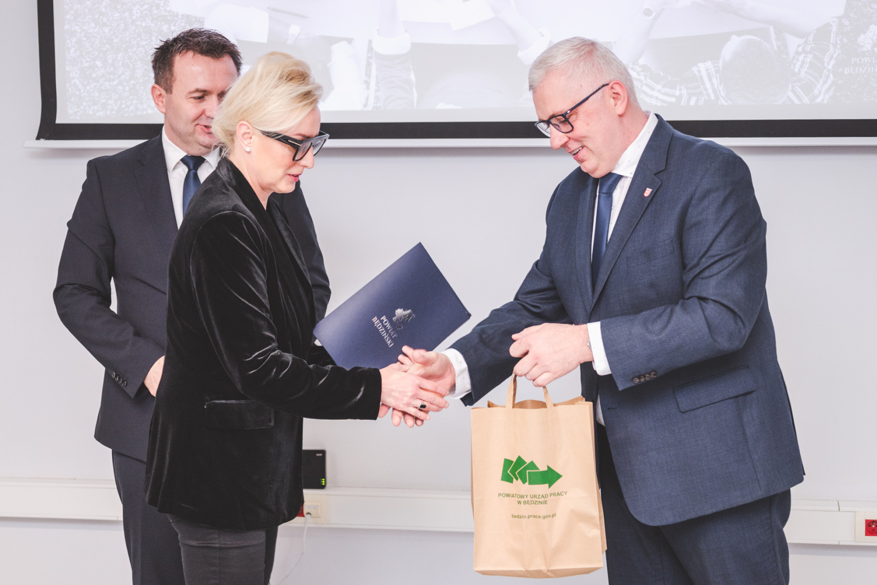 W spotkaniu uczestniczyli: Starosta Będziński Sebastian Szaleniec, Dyrektor Powiatowego Urzędu Pracy w Będzinie Wojciech Olesiński wraz z Zastępcą Rafałem Kubickim, a także nowo powołani członkowie Powiatowej Rady Rynku Pracy:
