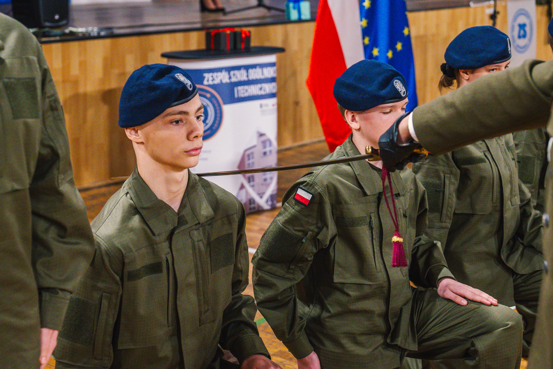 Ślubowanie od uczniów odebrała dyrektor szkoły Agnieszka Rutkowska, a tradycyjną szablą na kadeta pasował ich nauczyciel - sierżant Bogdan Stanik.